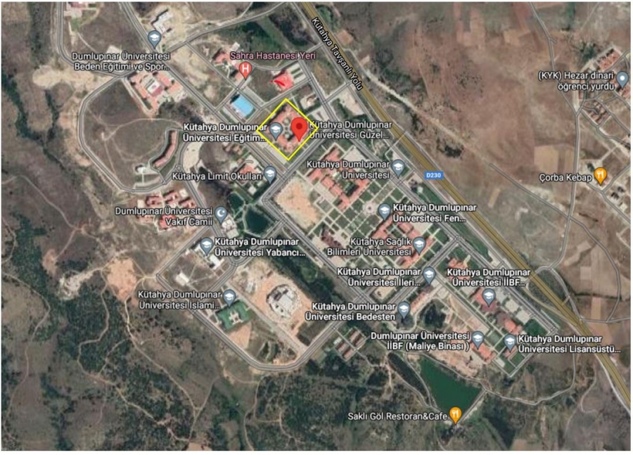 Resim 1 Kütahya Dumlupınar Üniversitesi yerleÅŸkesi uydu görüntüsü (https://www.google.com/maps/)
